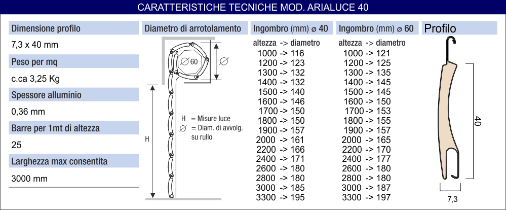 Avvolgibile in Alluminio Coibendato a Foro Largo - 7,3x40